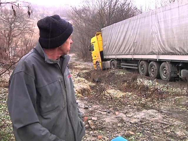 По словам водителя, он ехал по маршруту, составленном GPS навигатором, который и завел его на Диевку (отдаленный поселок в черте города) на улицу Крутой спуск. Как оказалось, улица полностью оправдала свое название, проехав несколько минут по безасфальтным ухабам, водитель понял, что назад уже не может вернуться и решил ехать вперед. Спустя некоторое время фура, перегруженная глиной, вьехала в яму и уже не смогла из нее выбраться.