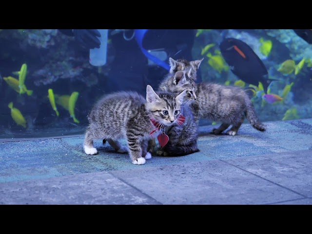 В США котята из Atlanta Humane Society навестили рыб и медуз в океанариуме Georgia Aquarium, который приостановил работу из-за COVID-19.
