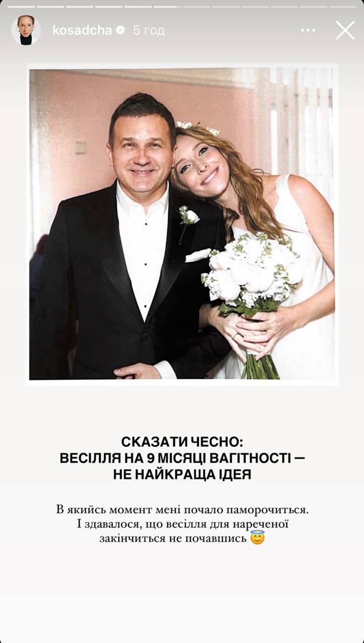 - Сказать честно: свадьба на девятом месяце беременности – не самая лучшая идея. В какой-то момент у меня начала кружиться голова. И казалось, что свадьба для невесты закончится, не начавшись. Вообще мы планировали расписаться и тихо посидеть в ресторане узким кругом. Но тут включились друзья и понеслось: музыки, застолья, традиции, - рассказала Осадчая.