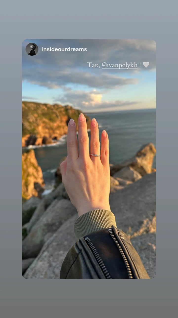 Судя по кадрам, Пелых сделал предложение во время отпуска в Португалии. Иван преподнес возлюбленной кольцо на горном побережье Атлантического океана.