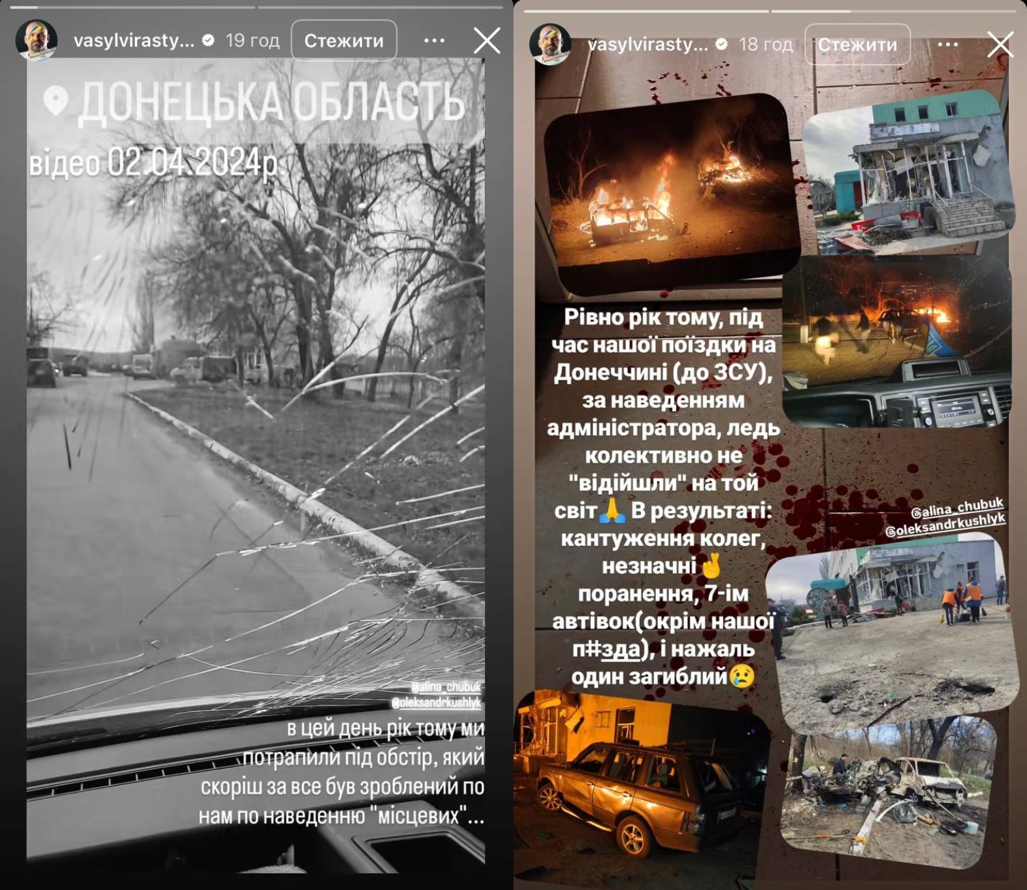 - Ровно год назад во время нашей поездки в Донецкую область к ВСУ по наводке администратора едва коллективно не отошли в мир иной. В результате: контузии коллег, незначительные ранения, семи автомобилям (кроме нашего) п*зда и, к сожалению, один погибший, - вспомнил спортсмен.