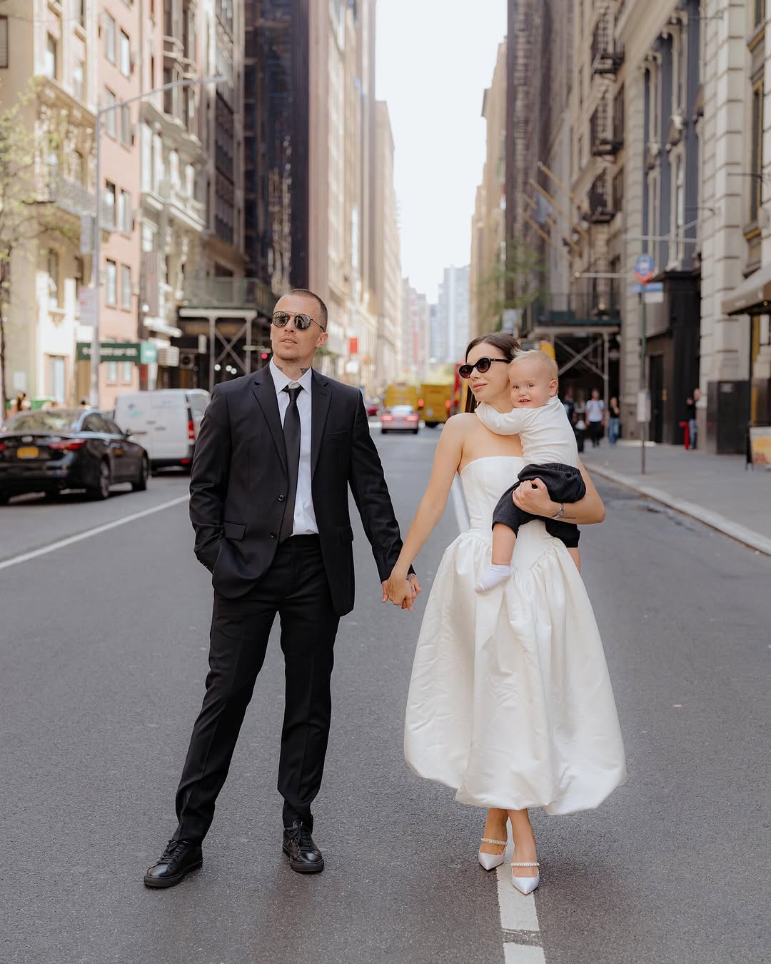 Пара официально оформила отношения в Нью-Йорке. Для церемонии бракосочетания Литвин выбрала платье от украинского бренда BALYKINA, а ее супруг - черный костюм с галстуком того же цвета.