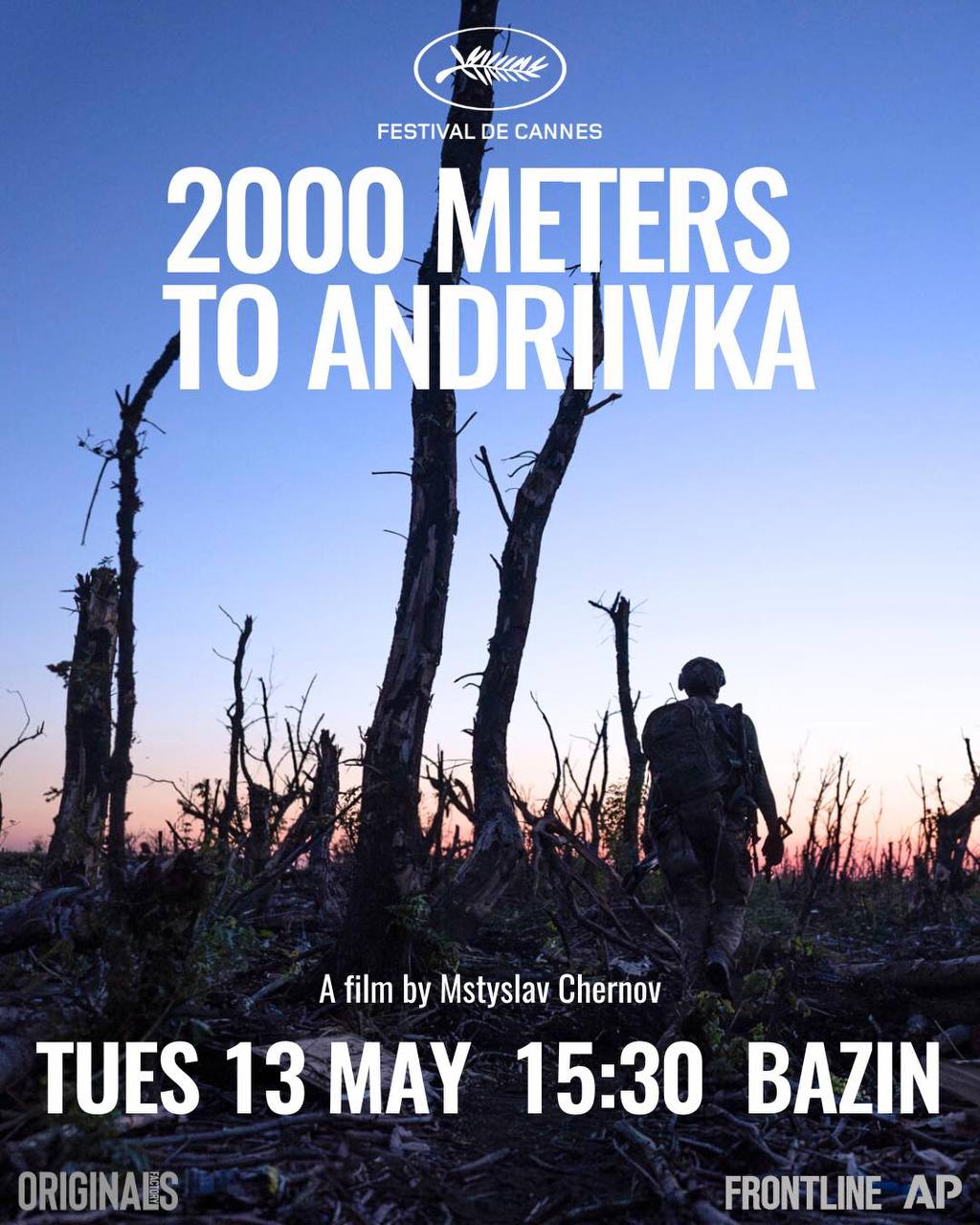 Показ состоялся 13 мая в день церемонии открытия 78 Festival de Cannes, в рамках которого прошел «День Украины». Режиссер лично представил фильм и в своей речи в первую очередь поблагодарил украинских военных.