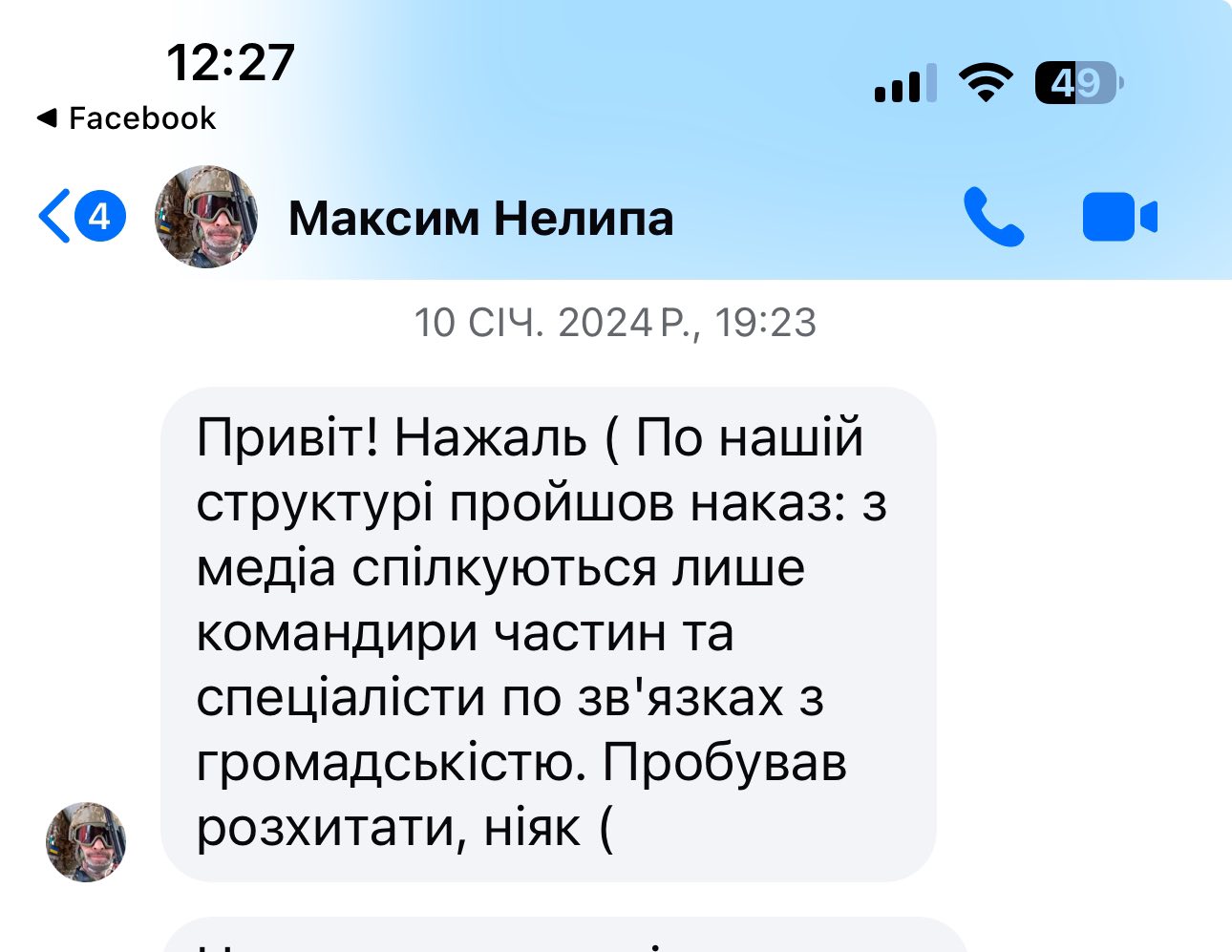 Падалко также призналась, что сожалеет о том, что ей не удалось уговорить Нелипу на интервью. Маричка в Threads обнародовала одно из сообщений от шоумена на предложение записать их разговор.