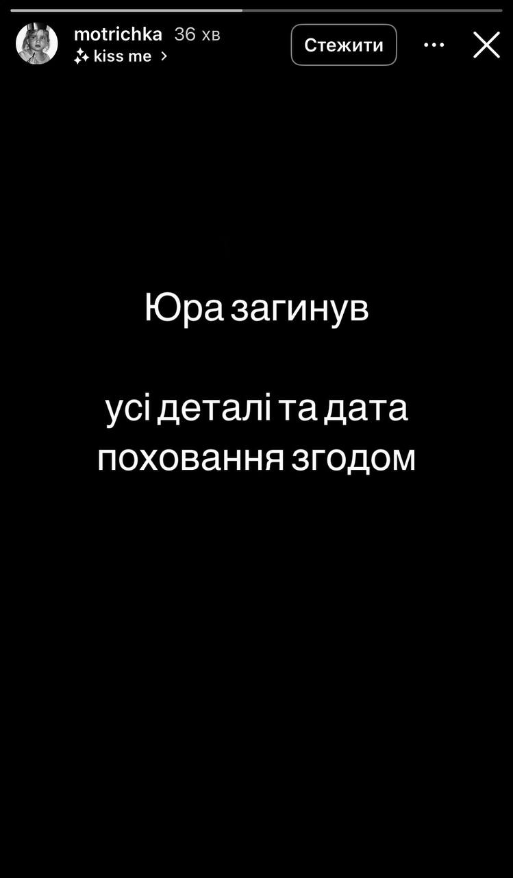 - Юра погиб. Все детали и дата похорон позже, - написала в сторис девушка.