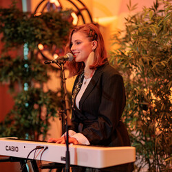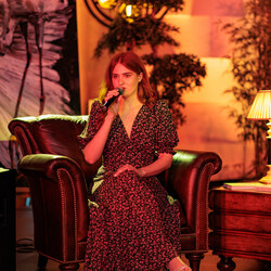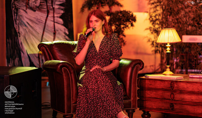 Певица Геля Зозуля пришла на благотворительный вечер в качестве гостя, но экспромтом присоединилась и к самим чтениям со своей авторской поэзией.