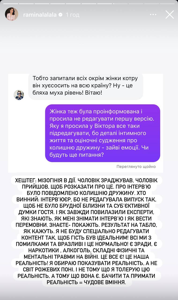 Рамина Эсхакзай ответила на критику из-за интервью с Виктором Розовым
