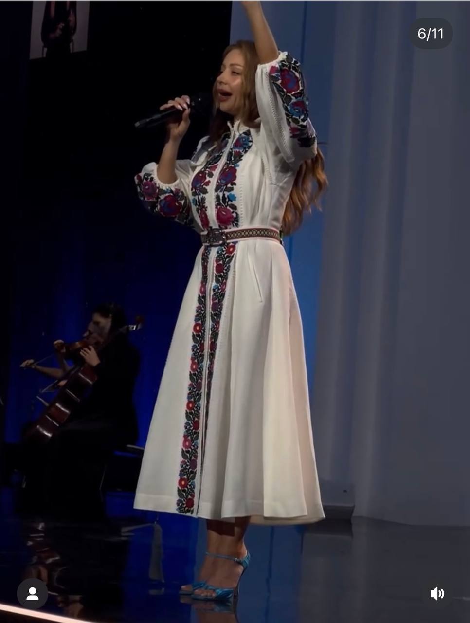 Для выступления артистка выбрала наряд от Roksolana Bogutska. Стоимость наряда на официальном сайте бренда составляет 1600 долларов (66 600 гривен).