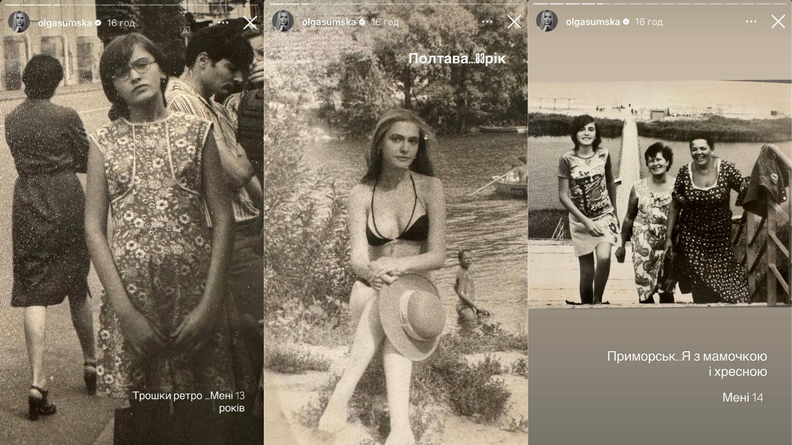 В частности, Сумская показала, как выглядела в 13 лет, а также фото с сестрой Натальей, мамой Анной и со своей крестной в Приморске. Кроме того, она выложила фото в 17-летнем возрасте, на которых запечатлена в уже узнаваемом образе - с длинными светлыми волосами.