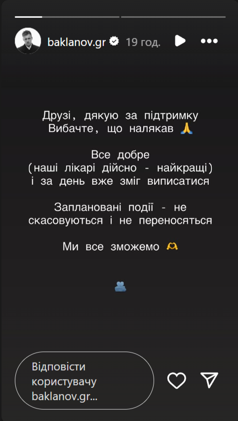 Позже Григорий вышел на связь и поблагодарил поклонников за поддержку. В сторис актер отметил, что чувствует себя хорошо благодаря помощи врачей. Более того, через день его уже выписали из больницы.