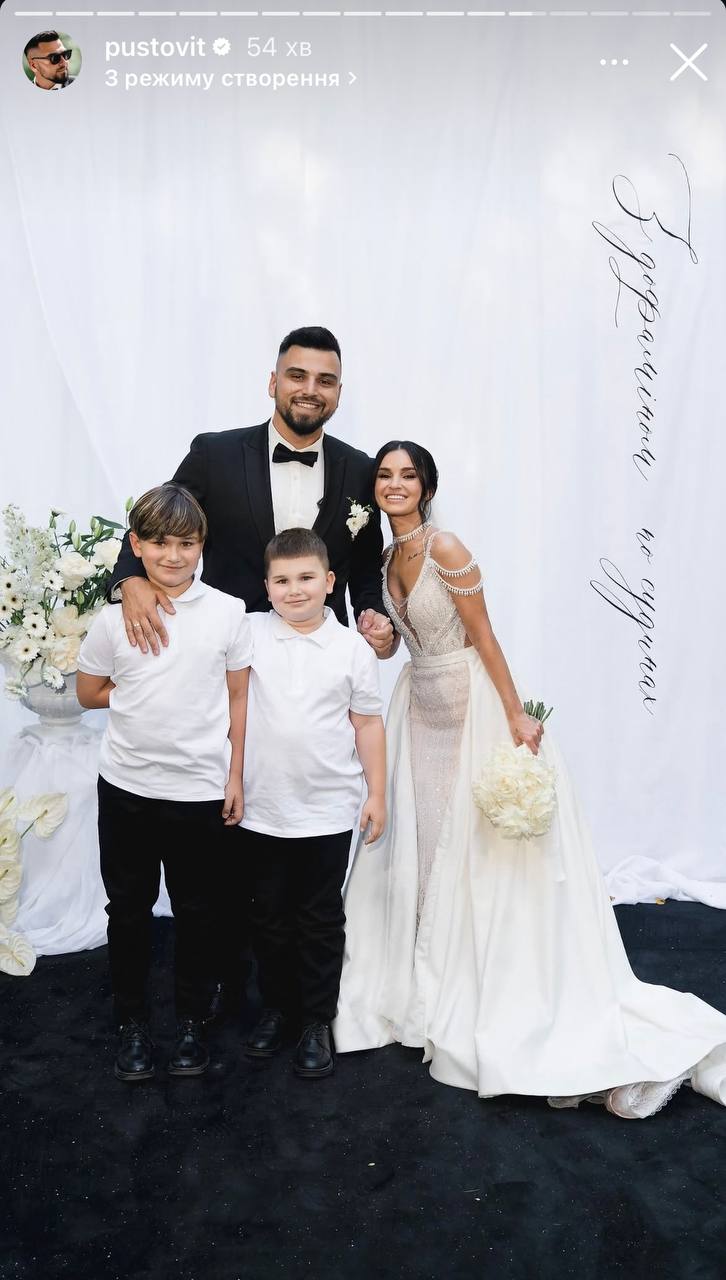 Роспись пары состоялась под отрытым небом в присутствии близких и друзей. Там же Игорь и Виктория станцевали первый танец молодых. На свадьбе супругов присутствовали и сыновья Пустовита от предыдущих отношений с блогером Сашей Бо - Даниил и Евгений.