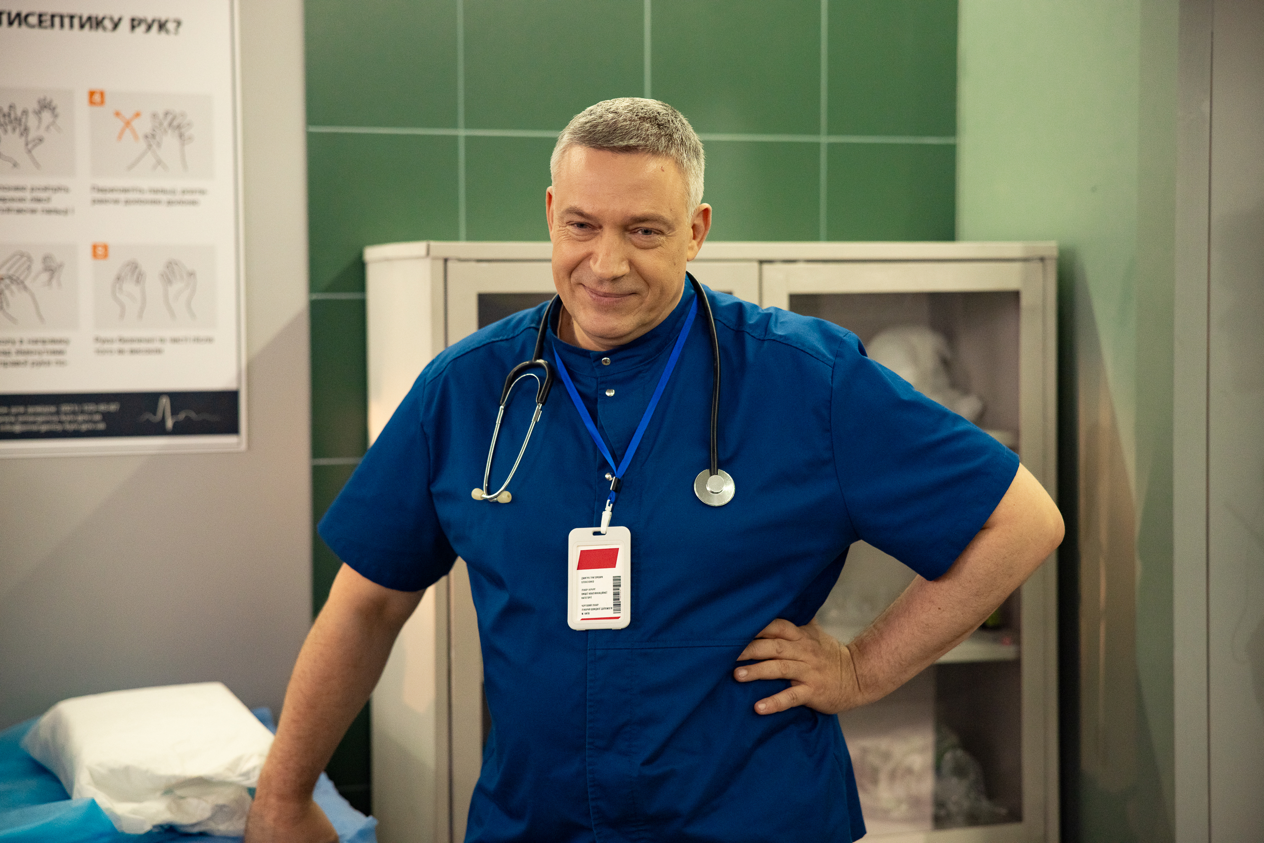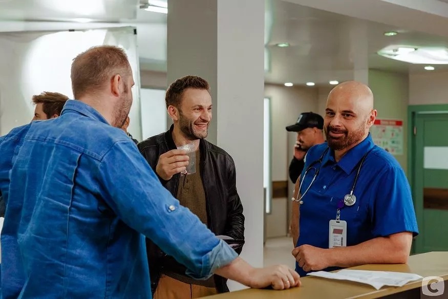 – На съемках – и это благословение, – присутствовала консультант. Александра, как я понял, практикующий хирург. Она прекрасно понимала, что мы, артисты, немножечко, а некоторые и не немножечко, неуки, потому что здесь речь идет о практической медицине. Мы ведь этим в жизни не занимались, – рассказывает актер о своей работе в интервью Коротко про. – Но пани Александра замечательная – и ручку поставит, как надо, и подскажет, как себя вести. Она отлично все объясняла. Поэтому ей судить, как вышло. Думаю, с профессиональной точки зрения врачей, будет много с чего посмеяться. Но настоящие врачи говорят, что и «Доктор Хаус», с точки зрения медицины, – полный трэш и полный кирдык. Но это не мешает нам его смотреть, потому что эта вселенная иная, в ней нужно проживать события, связанные с жизнью, со смертью, с человеческими эмоциями, которые сопровождают нас на этом пути. И это главное в любой истории. Мы внимательно смотрели на пани Александру, когда она нам что-то показывала, и внимательно слушали, когда она нам что-то рассказывала. И, конечно, слушались, когда она нам делала замечания.