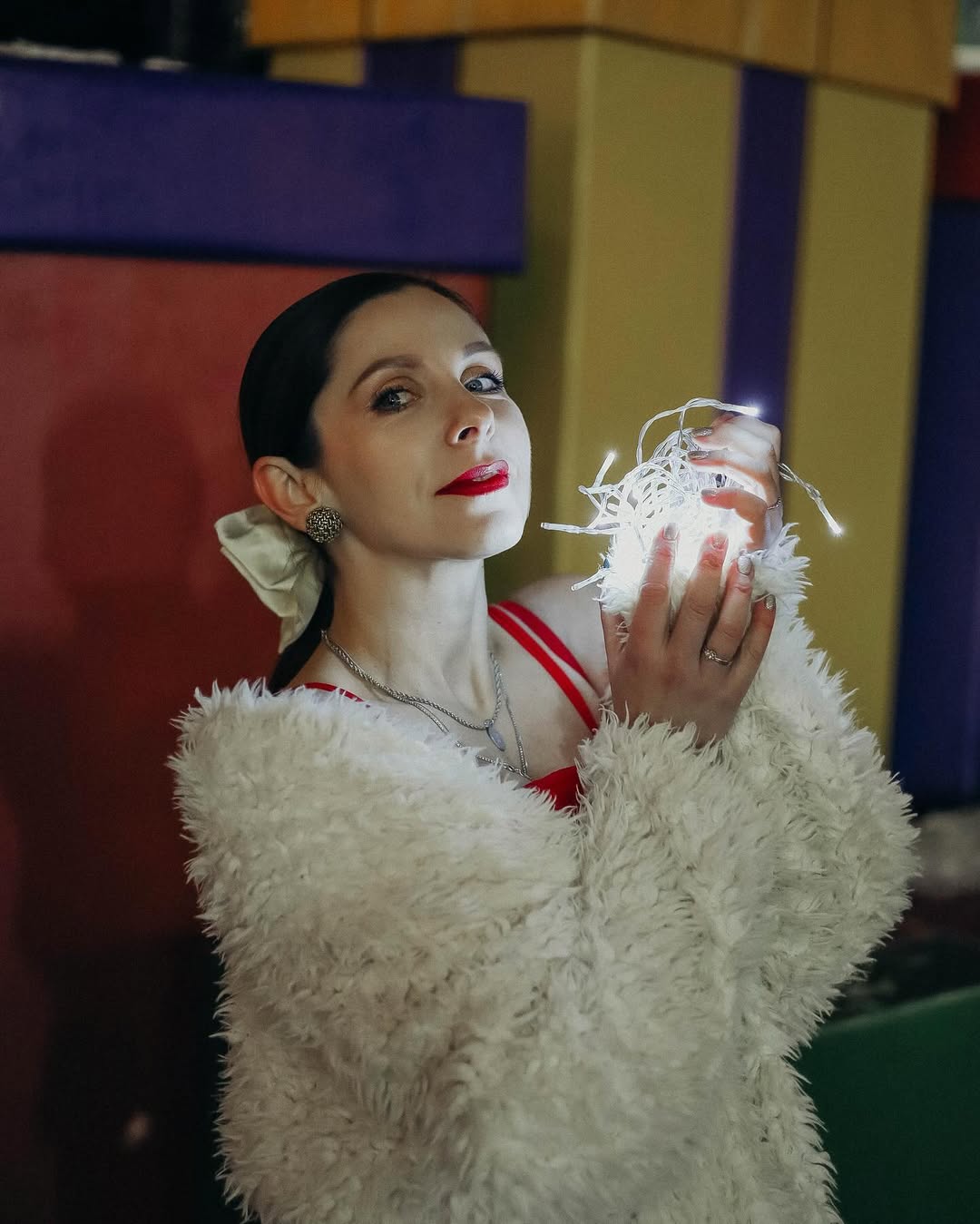 У Виталины Библив дома много разнообразных портативных ламп. Сейчас в помощь, по словам актрисы театра и кино, еще и новогодний декор, который светится.