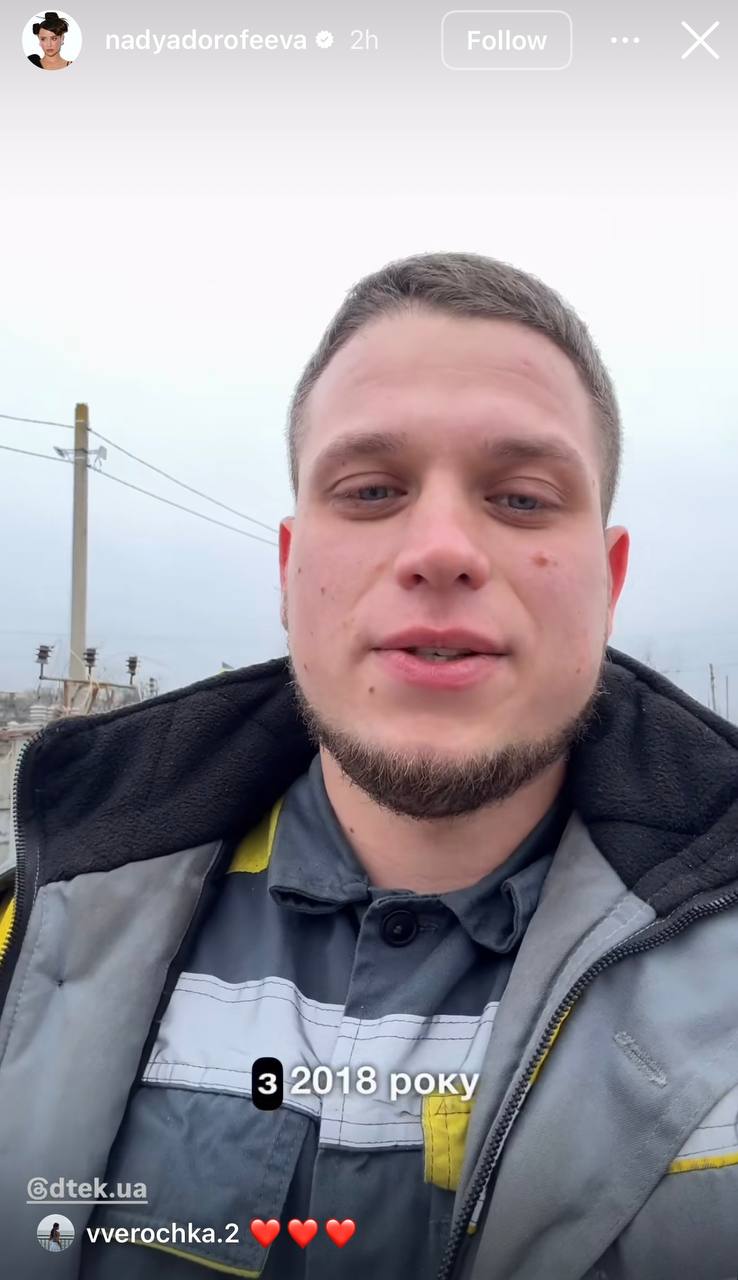 Надя Дорофеева в день энергетика передала свой Instagram работнику ДТЭК из Днепропетровской области. Об этом певица сообщила в своих социальных сетях.