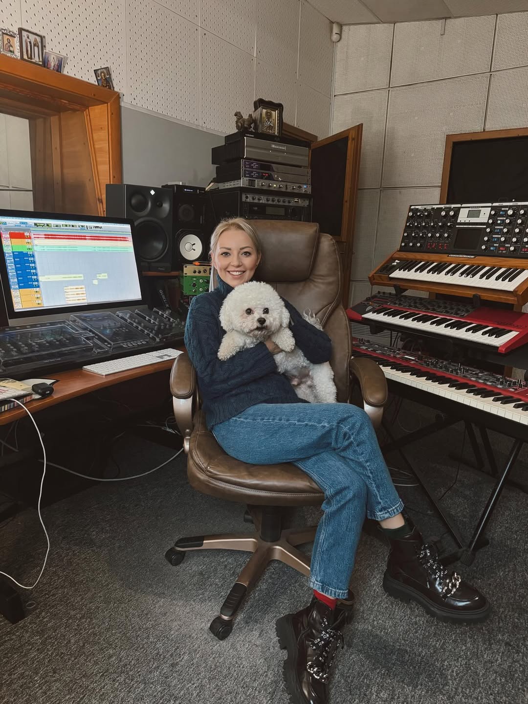 Арина Домски в киевской студии, где записывала альбом. Фото: instagram.com/arinadomski