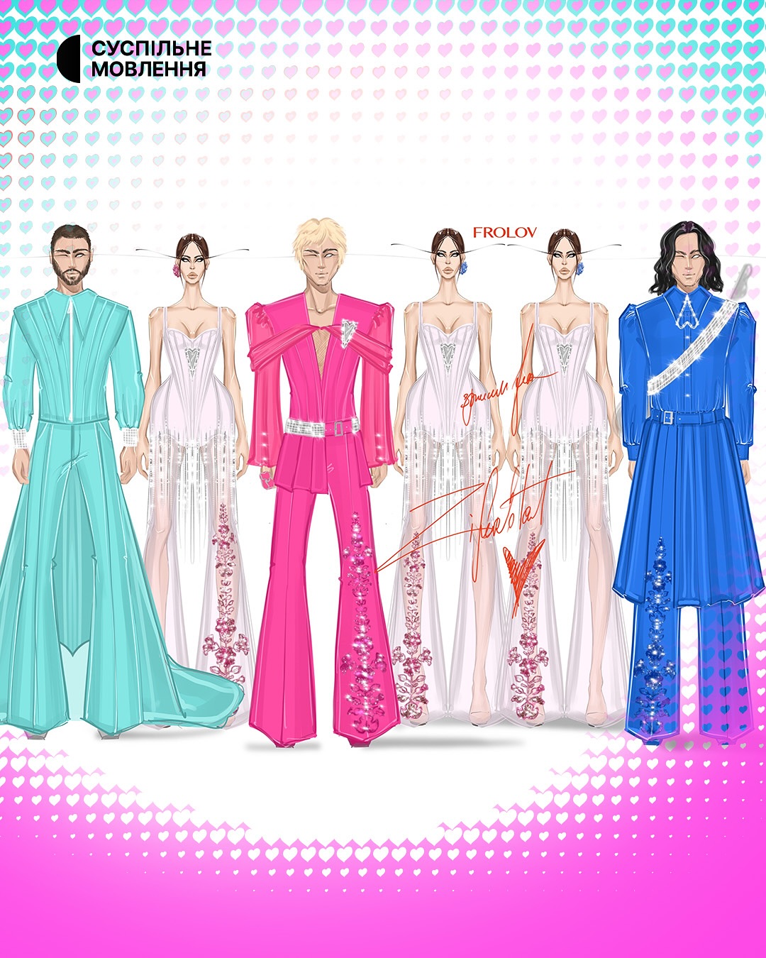 Образы-символы на костюмах артистов – сердца и мальвы. Фото: instagram.com/suspilne.eurovision/