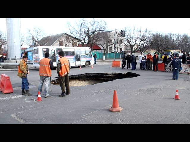 Сегодня после обеда на оживленном одесском перекрестке наблюдалось необычное скопление людей. Местные жители окружили огромную яму, образовавшуюся на углу Люстдорфской дороги и улицы Левитана. Горожане говорят, что виной всему – подземные выработки, которые затапливает водой.