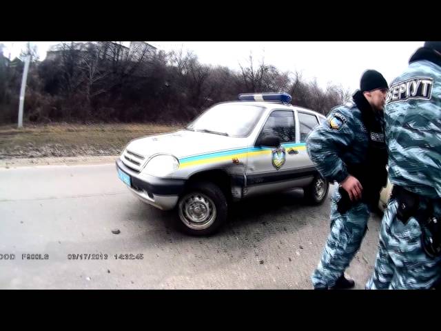 "Я ехал по проспекту Тракторостроителей и увидел сотрудников "Беркута", которые обыскивали водителя мопеда. Я подошел, выяснил все ли в порядке, нужна ли моя помощь. Оказалось все в порядке. Пожелав друг другу удачи мы разошлись каждый по своим авто, и тут я увидел, как "Беркут" при развороте не пропустил "десятку", которая и пошла на таран" - рассказывает активист ДК Виталий.