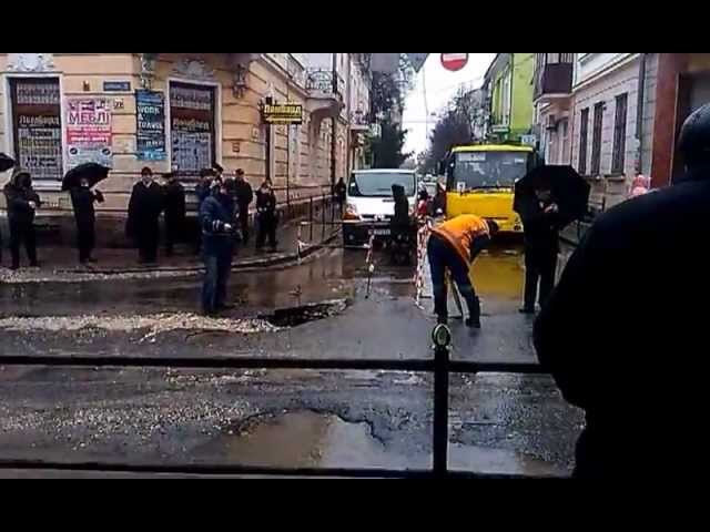 В областном центре вчера возникла пропасть посреди проезжей части на перекрестке центральных улиц Русской и Коперника. Из-з-а провала около одного метра диаметром и полтора метра - в глубину на время пришлось перекрыть движение транспорта.
