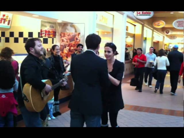 Он, однако, придерживался процедуры: стал на колено и предложил руку и сердце. Кроме того, пригласил гитариста и спел "серенаду" любимой.
