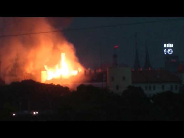 К этому часу практически полностью выгорела и обрушилась крыша здания, огонь захватил помещения на верхнем этаже Рижского замка. На помощь коллегам пришли пожарные из Юрмалы.