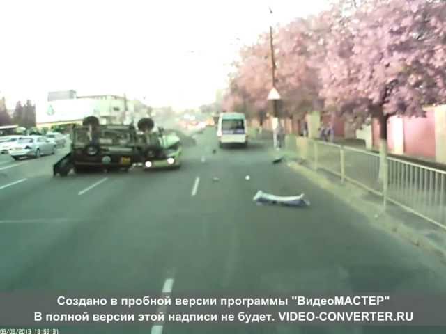 По данным свидетелей, автомобиль с милицейскими номерами на большой скорости вылетел на встречную полосу и протаранил "Жигули", водитель которого пытался избежать лобового столкновения - и врезался в "Ниссан". От удара патрульный автомобиль перевернулся и приземлился на крышу другой ВАЗ.