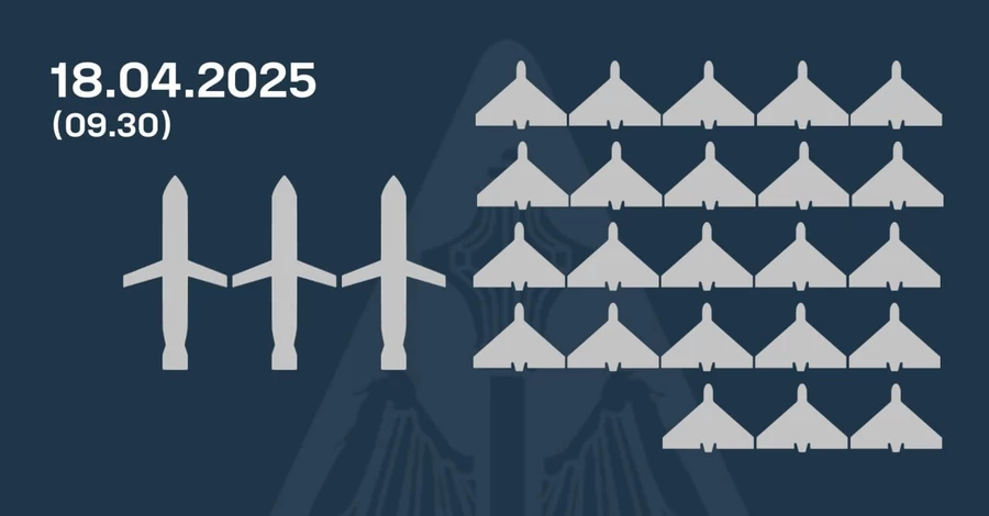 В ночь на 18 апреля российские оккупанты ударили по Украине ракетами наземного базирования и ударными БпЛА. Как сообщили в Воздушных силах ВСУ, враг атаковал 43 средствами воздушного нападения - 6 ракетами разных типов и 37 ударными БпЛА (беспилотниками-имитаторами других типов).
