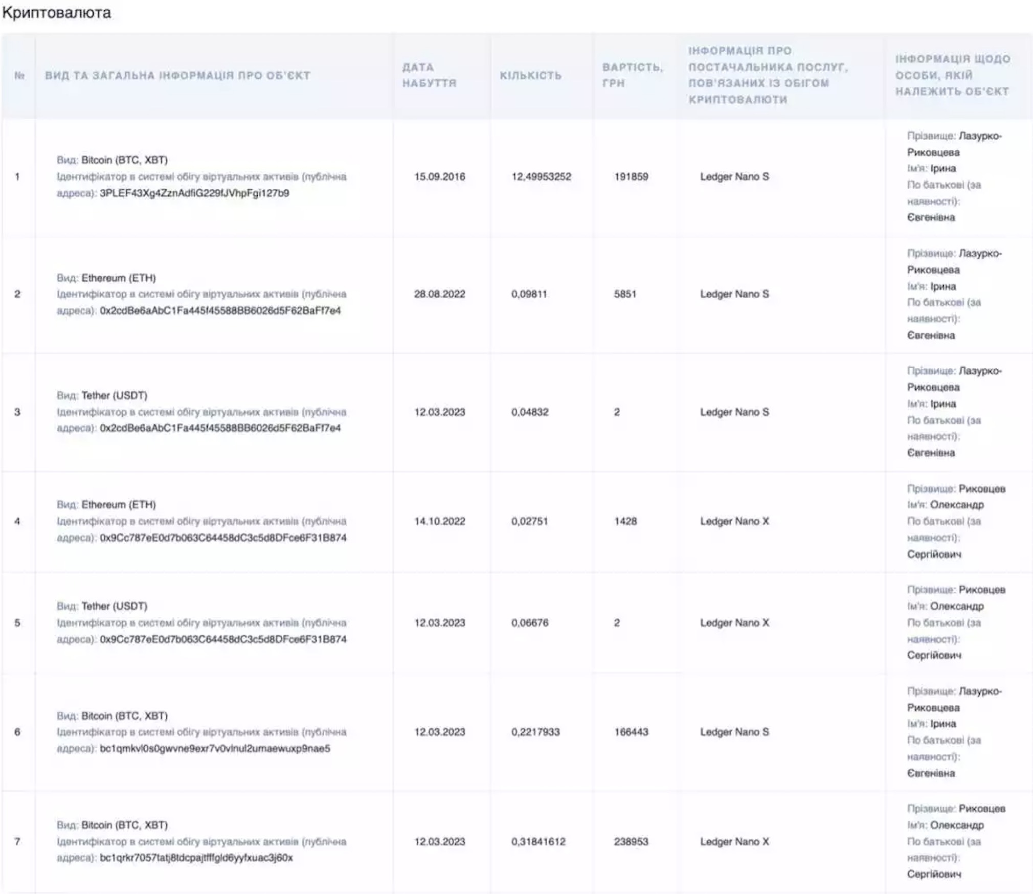 Другие участники антирейтинга также задекларировали средства на фейковых кошельках – на них фигурируют суммы до 1 млн гривен. По мнению журналистов-расследователей, их криптовалюта ждет своего стремительного роста в будущем.