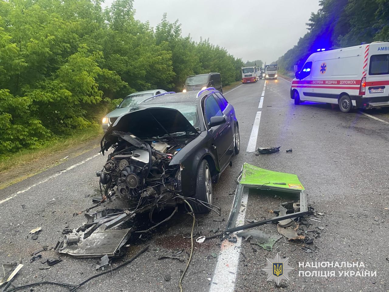 В среду, 9 июля, около 20:10 произошла авария на автодороге Львов - Шегини в селе Родатичи Львовского района. Как предварительно установили правоохранители, там столкнулись автомобиль Audi А4 и рейсовый автобус "Львов – Прага". В результате автобус с пассажирами вылетел в кювет. Об этом сообщает полиция Львовской области.