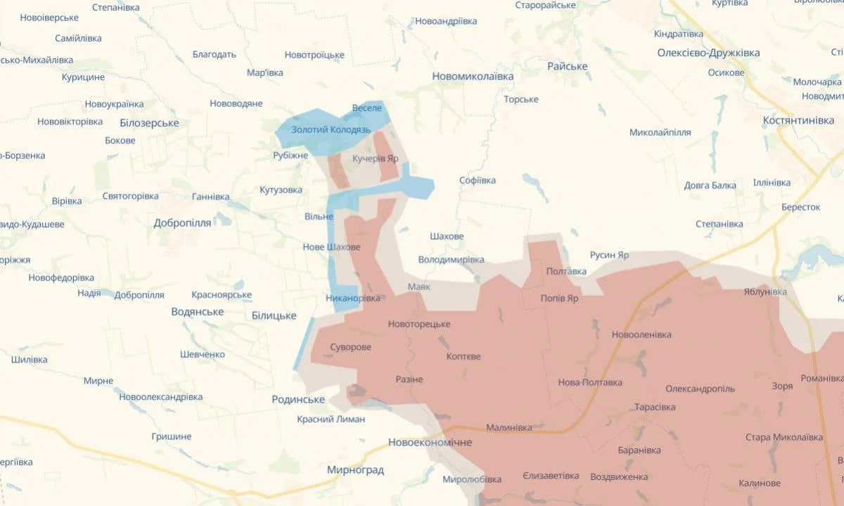 Украинские военнослужащие смогли отбросить российских оккупантов возле Доброполья — вблизи Вольного, Рубежного, Золотого Колодязя, Шахвого, Сухецкого, Никаноровки и Веселого. Об этом сообщают аналитики DeepState в Telegram.