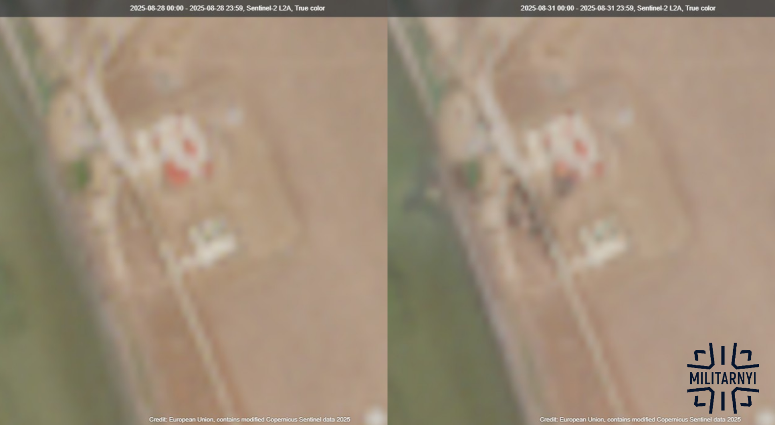 Также есть спутниковые снимки сервиса Copernicus Data Space Ecosystem, подтверждающие поражение объекта. Согласно им, главное здание заставы уничтожено, а прилегающая территория подверглась масштабному пожару. Из-за низкого разрешения фото оценить точные масштабы разрушений сложно.