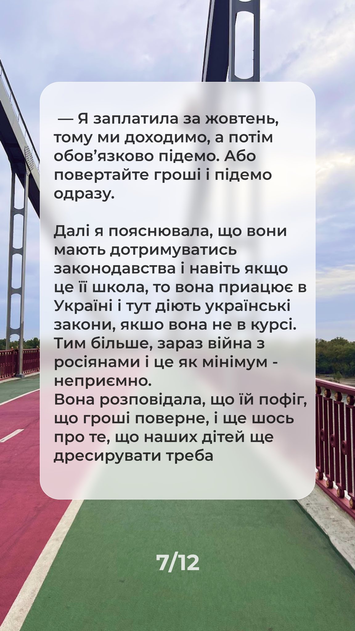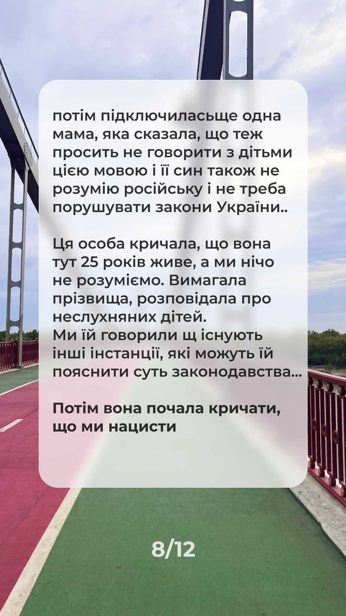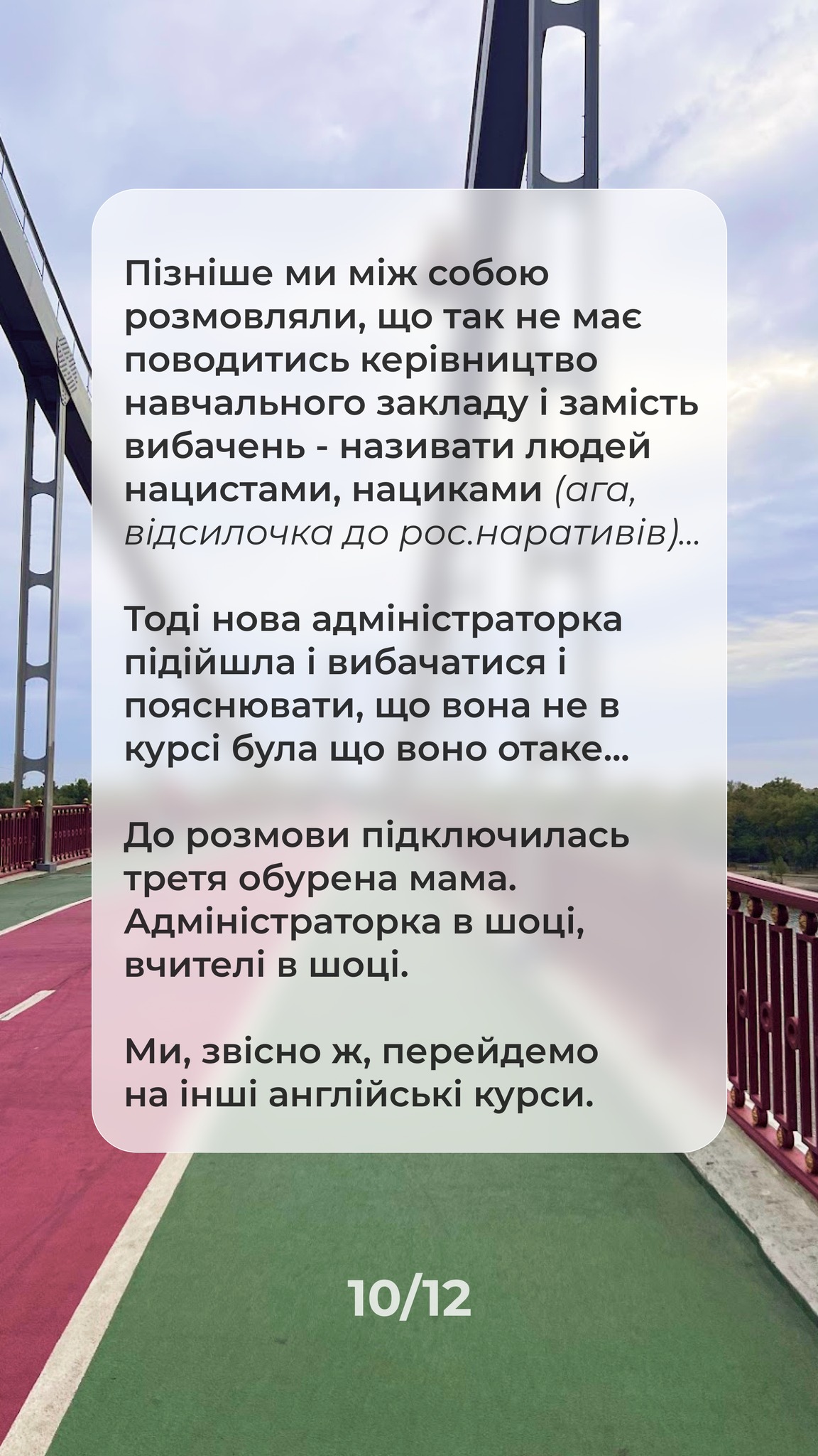 Несколько дней Елена Корусь – мама ребенка, который учится в школе – написала, что директор общается с детьми «русским языком с московским акцентом» и что в ответ на просьбу разговаривать с учениками на украинском языке обозвала родителей «фашистами» и «нациками». Корусь подчеркнула, что была вынуждена обратиться к руководству Helen Doron.