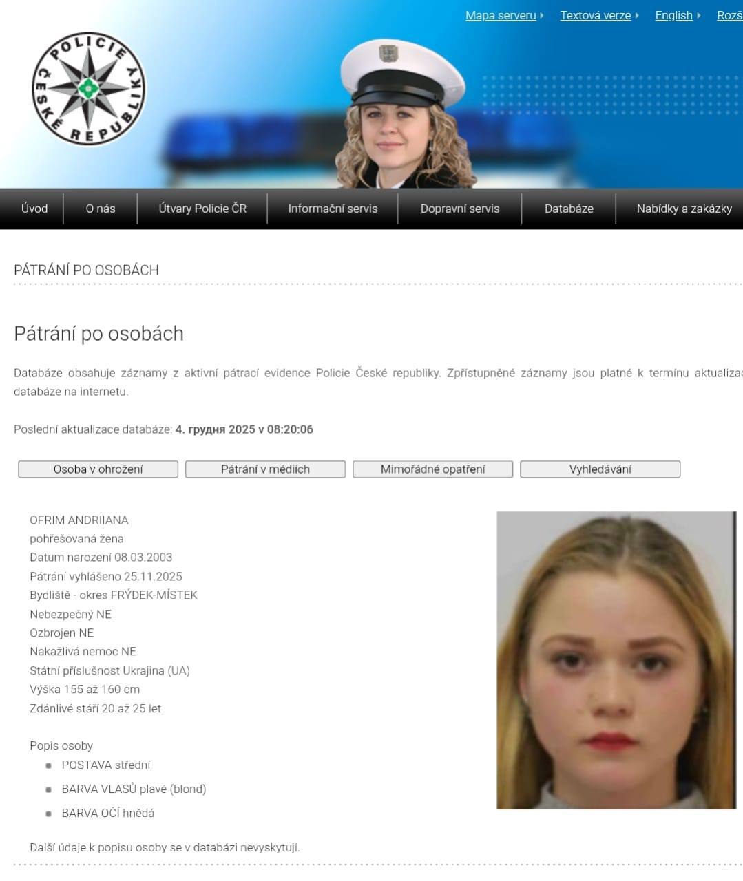 В Чехии мертвой нашли 22-летнюю украинку, которая пропала более двух недель назад. Полиция города Фридек-Мистек обнаружила тело Андрианы Офрим, а также задержала подозреваемого, признавшегося в совершении преступления. Об этом говорится в Facebook поселка Кобылецкая Поляна Раховского района Закарпатской области.