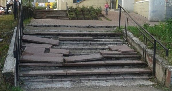 "Бракованный путь": лестница возле ЗАГСа в Киеве практическим разбита