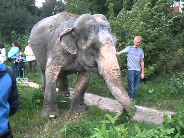 Рядом с гигантами топлятся изумленные жители близлежайших домов. Животные с удовольствием фотографируются со всеми желающими и обнимают их хоботом.