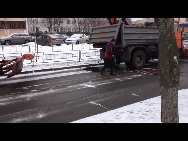 Представители сообщества "Блоггерский Киев" выложили в социальной сети Facebook видео, на котором видны "нанотехнологии" ремонта столичных дорог.