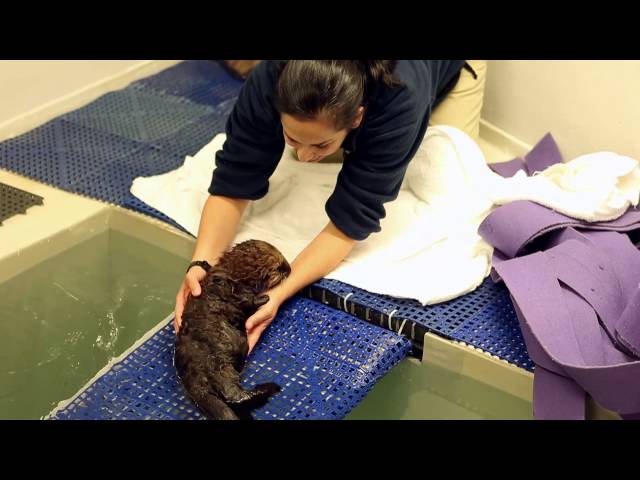 На последних видео, размещенных работниками аквариума, видно как зверька будят, расчесывают, взвешивают и кормят. А затем наступает время плавания и игр!