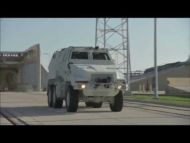 NASA использует новую бронемашину для защиты астронавтов и технического персонала, сообщает издание Gizmag. При запуске пилотируемых космических кораблей работники космодрома остаются около пусковой башни почти до момента пуска. В случае пожара или взрыва ракеты-носителя при запуске пилотируемых кораблей новые бронемашины по типу MRAP должна экстренно эвакуировать пилотов и наземных сотрудников с космодрома.