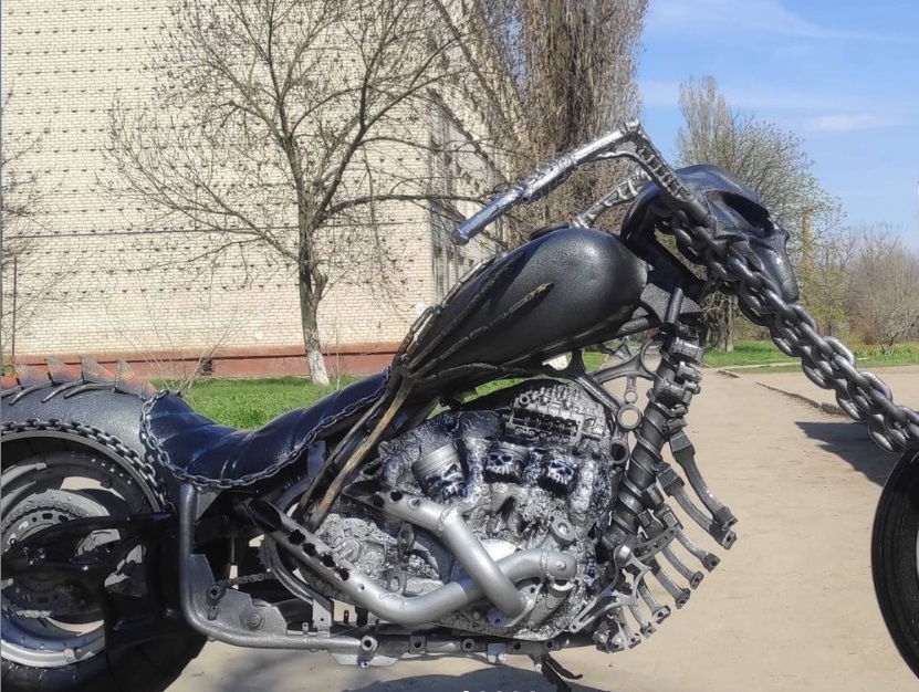 - У меня давно была идея создать Призрачного гонщика. Однажды ко мне приехали байкеры и попросили сделать что-нибудь интересное. Я решил, что пришло время осуществить задуманное. Запчасти для него собирал заранее. Сейчас скульптура стоит в Бердянске на Приморской площади. Фотозона довольно хорошая получилась, - с гордостью рассказал наш собеседник.