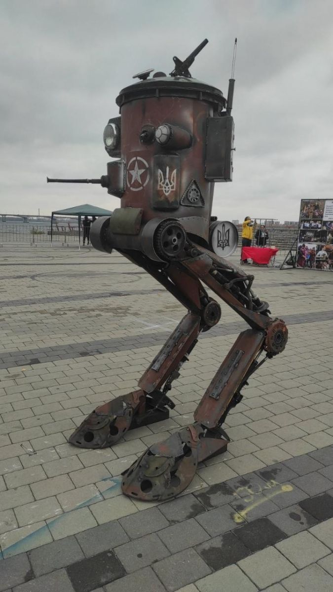 С тех пор прошло 6 лет. За это время Шапошник изготовил немало скульптур, причем многие из них говорят и двигаются. Например, шагающий танк из вселенной «Звездных войн» высотой 2,5 метра, который умеет ходить и разговаривать. Вообще, судя по всему, Александр фанат фантастики. Из его мастерской вышли марвеловский Грут из «Стражей галактики» для «Коваль-феста» в Днепре. Герои «Трансформеров»: Ти-Рекс и Бамблби. Последний персонаж тоже умеет «разговаривать». 3,5-метровый гигант приветствует учащихся Бердянского машиностроительного профессионального лицея.