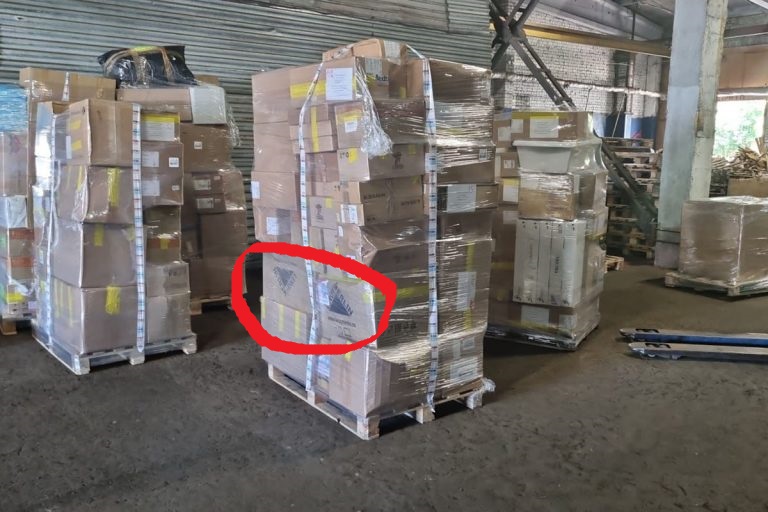 Лекарства для российский солдат, отправленные тверскими бизнесменами на временно оккупированные украинские территории - на коробках четко видна надпись Leroy Merlin. Фото: «Tverigrad» | nashigroshi.org