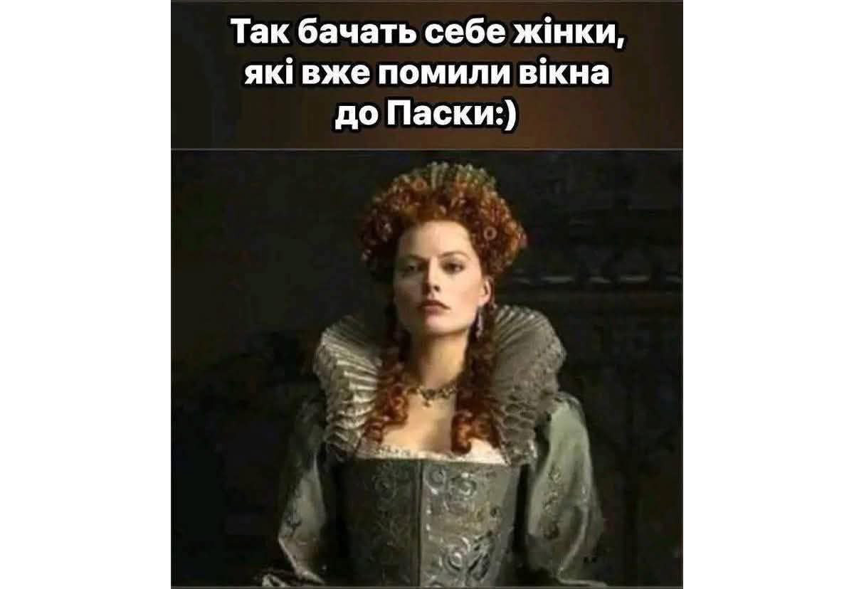 Уже три года мы все реже слышим «давайте уже после Пасхи», потому что есть неотложные дела – уничтожение врага не терпит проволочек. Но есть и типично пасхальные работы – например, мытье окон или выпекание пасок, которые нужно закончить к празднику. Это настолько важно для украинцев, что мемов на эту тему масса.