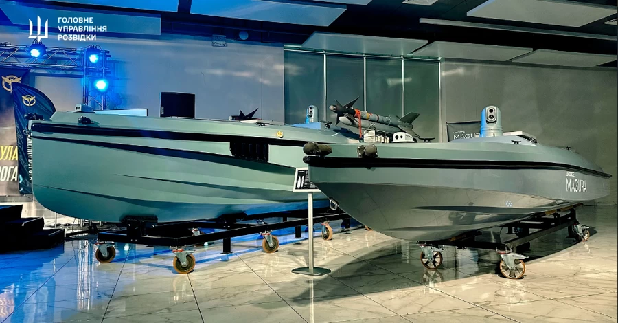 Главное управление разведки представило в Киеве серию ударных морских дронов Magura. Среди них – знаменитая "убийца" кораблей черноморского флота РФ Magura V5, мультифункциональная платформа Magura V6P, дрон-ракетоноситель Magura V7, впервые в истории уничтоживший вражеский боевой самолет, и модель Magura V7, оснащенная боевым пулеметным модулем. Об этом сообщает ГУР.