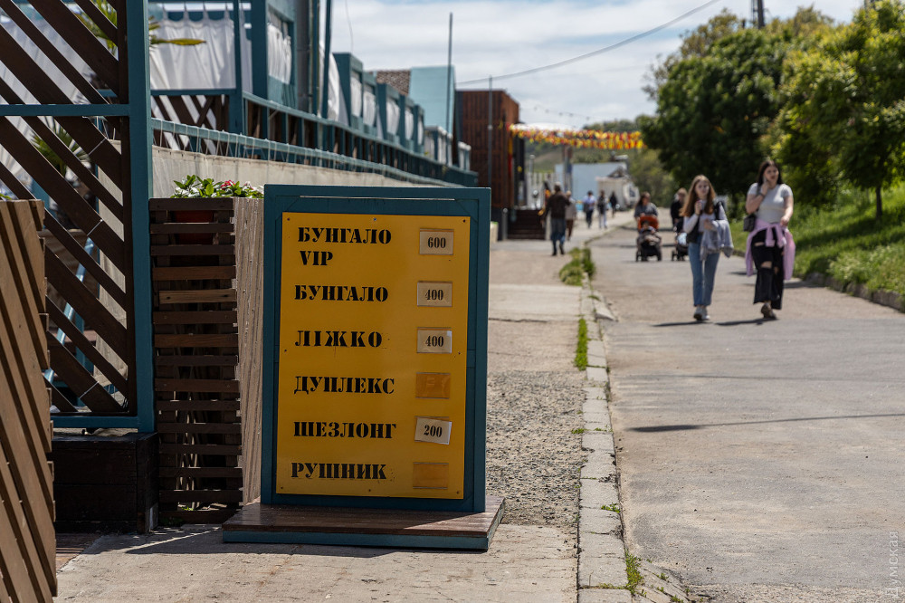 Еще на одесских пляжах мало отдыхающих – по паре человек. Погода не особо располагает к водным процедурам и воздушным ваннам, да и сами пляжи не везде выглядят готовыми к приему отдыхающих – не везде подготовлена инфраструктура типа кабинок для переодевания лежаков, тентов и т.д. Зато уже вовсю работают пляжные кафе! И цены для пляжников уже подготовлены: они остались прошлогодними, например, шезлонг для отдыха на пляже можно будет взять за 200 грн.