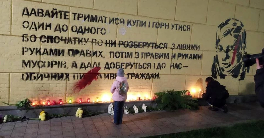 На Почтовой площади в Киеве неизвестные зарисовали граффити с портретом и цитатой Екатерины Гандзюк – общественной активистки, погибшей в результате нападения с кислотой в 2018 году. Это место стало символической локацией, где ежегодно 17 июня, в день рождения Кати, украинцы собирались, чтобы почтить ее память.