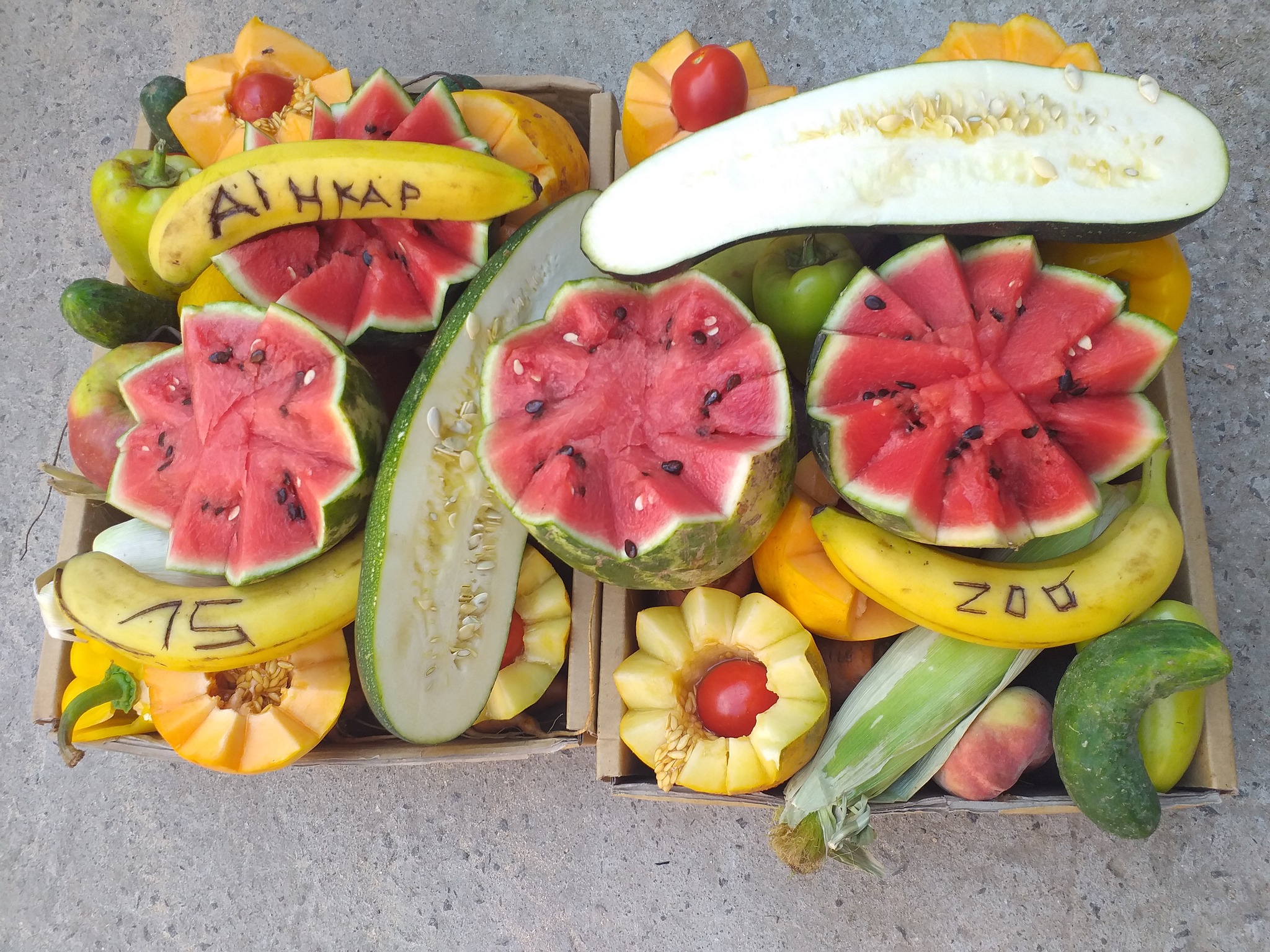 Сегодня юные биологи зоопарка вместе с сотрудниками отдела поздравили Динкара с днем рождения. Для юбиляра и его друга Шанти приготовили вкусное угощение – свежие фрукты, сочные арбузы, ароматные дыни, хрустящую кукурузу, огурцы, сладкие бананы. Слоны с удовольствием полакомились праздничным угощением.