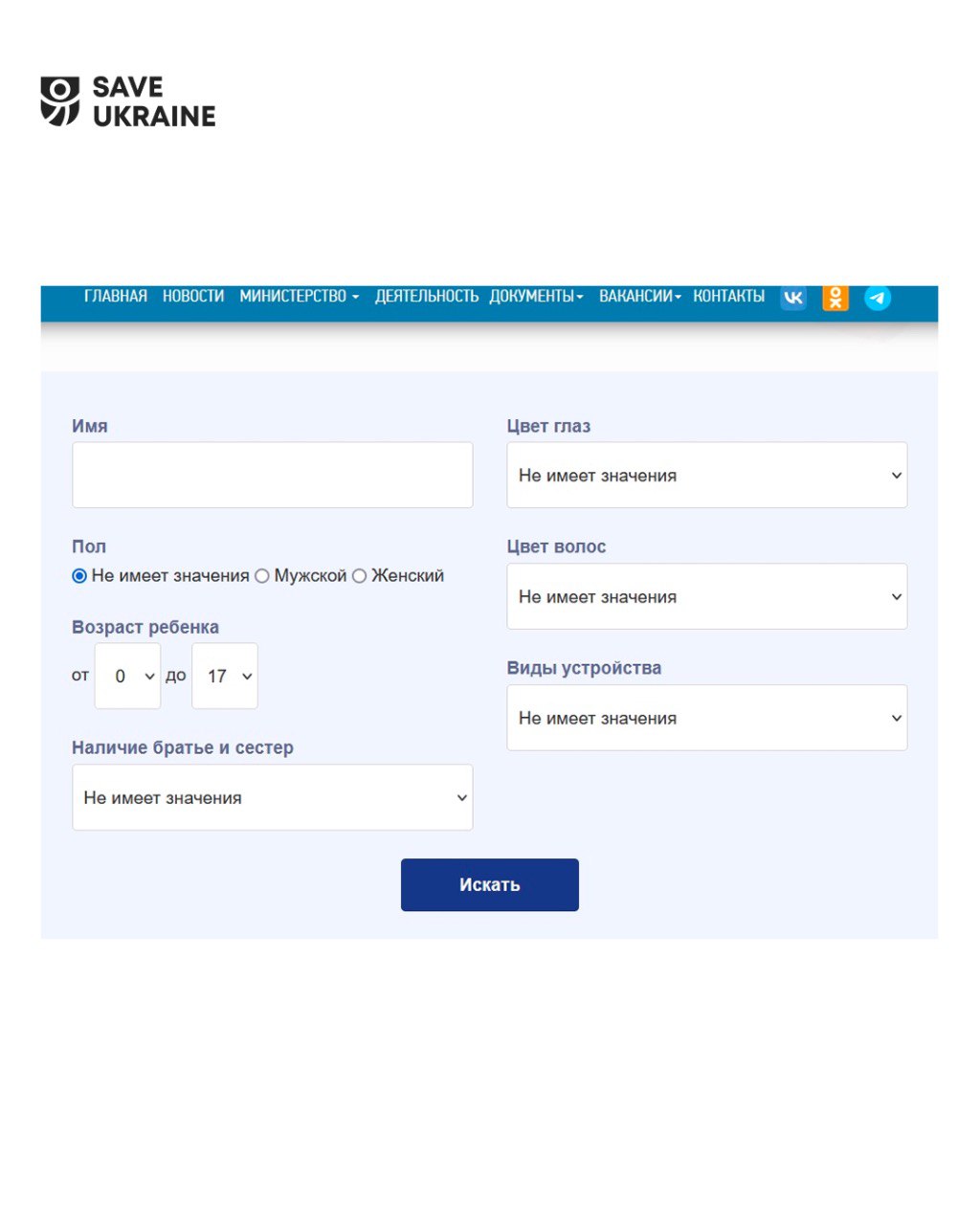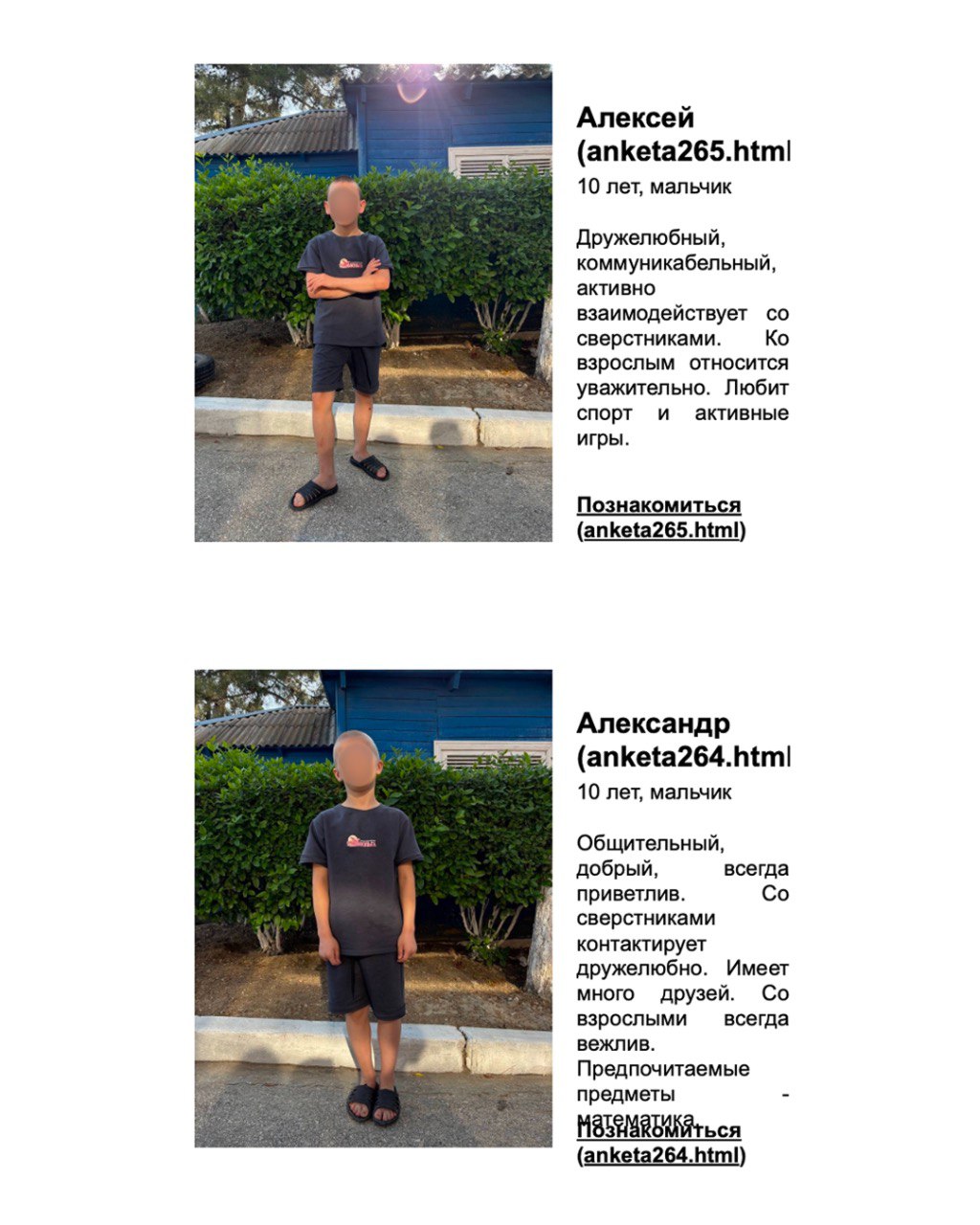 Российские оккупационные структуры запустили онлайн-каталог с украинскими детьми, преимущественно из Луганской области. Так, на сайте так называемого «министерства образования и науки ЛНР» опубликованы фотографии детей с подробными описаниями их характера, увлечений и даже возможностью «отфильтровать» по цвету глаз, волос или полу, сообщил Николай Кулеба, основатель организации Save Ukraine, занимающейся возвращением депортированных украинских детей.