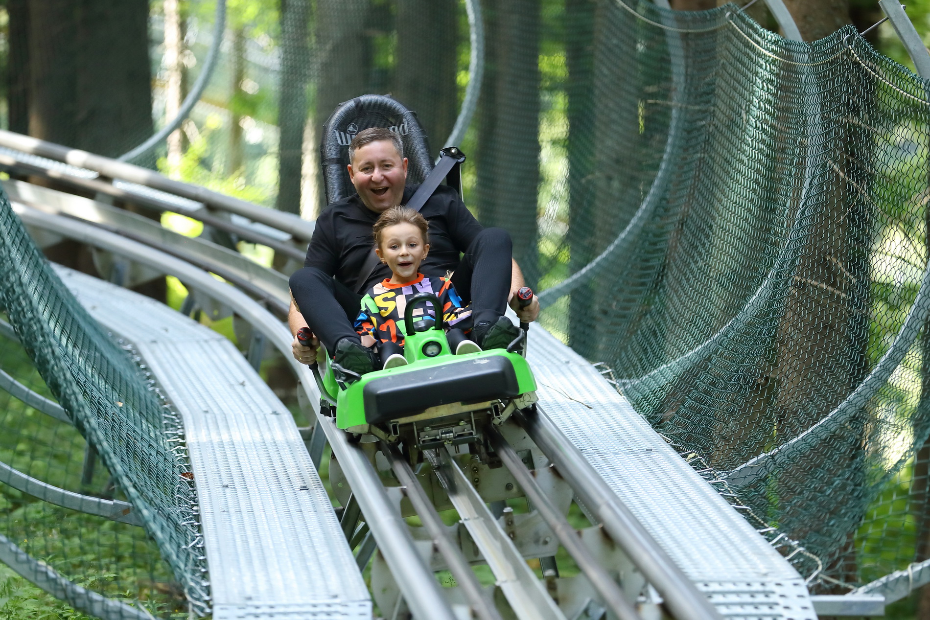 Если уже хочется покататься с горки, но до зимы еще далеко – добро пожаловать на 65-метровый спуск со специальным покрытием, которое обеспечит те же ощущения, что при катании по снежному покрову. Никаких навыков не нужно – кататься могут как взрослые, так и трехлетние дети.