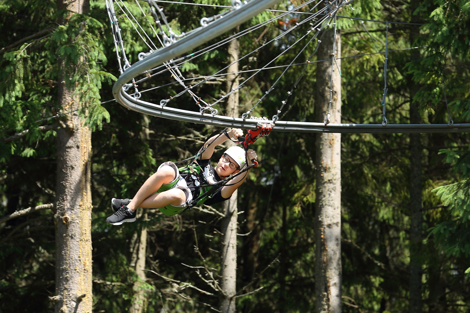 А здесь вам предложат спуститься по стальному тросу, подвешенному на канатах между деревьями. Путешествие длиной в полкилометра будет включать все прелести экстремального отдыха: будут и спуски, и подъемы. А вот что касается падений, то сотрудники курорта уверяют, что все безопасно. Зато для усиления эффекта от воздушного полета на высоте 15 метров обещают еще и парочку крутых виражей. Пускают даже детей.