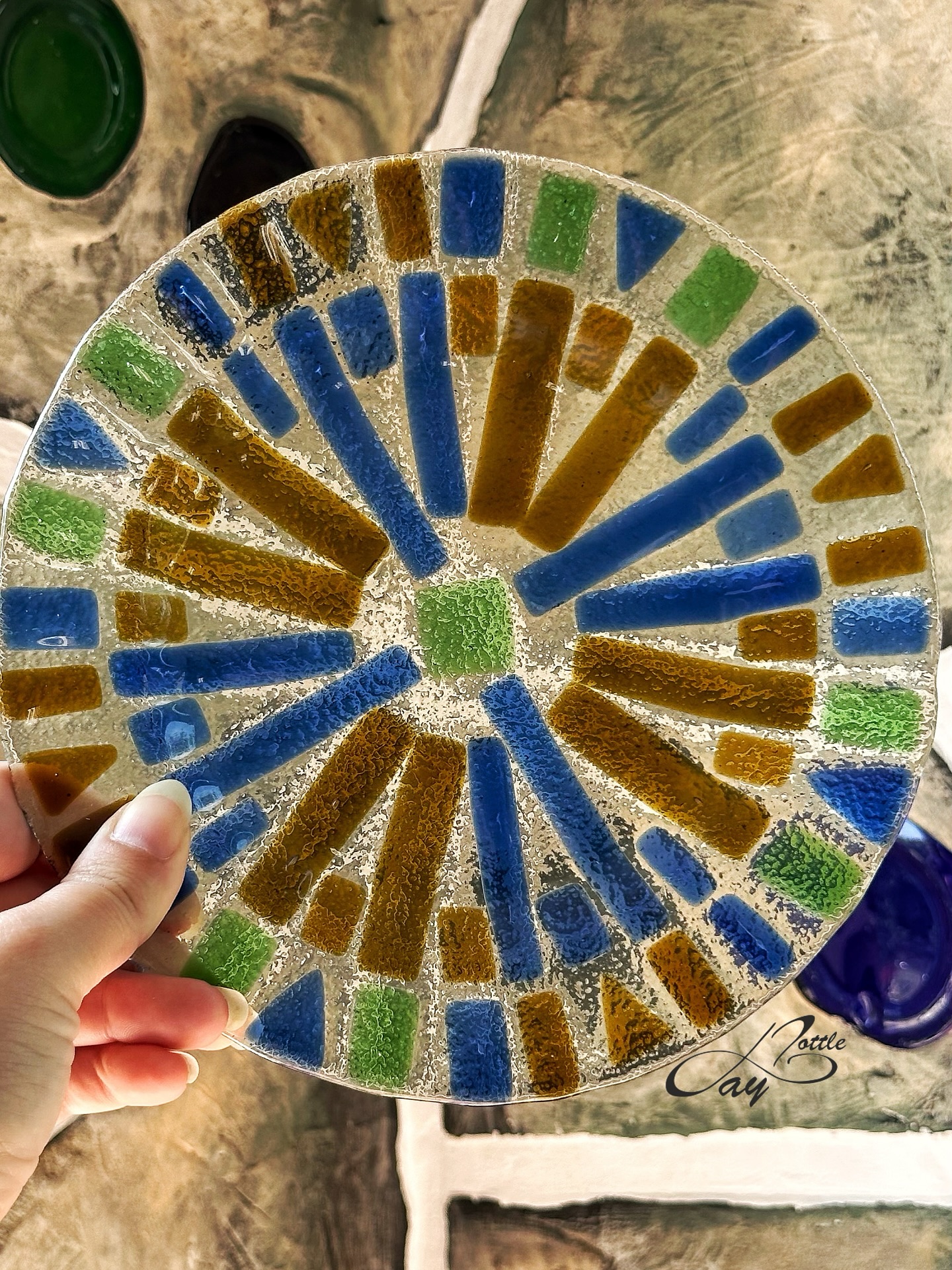 Орнаментальные тарелки словно разрисованы разными цветами, а на самом деле состоят из стекла разных цветов и оконного. Фото: ФБ Lay Bottle